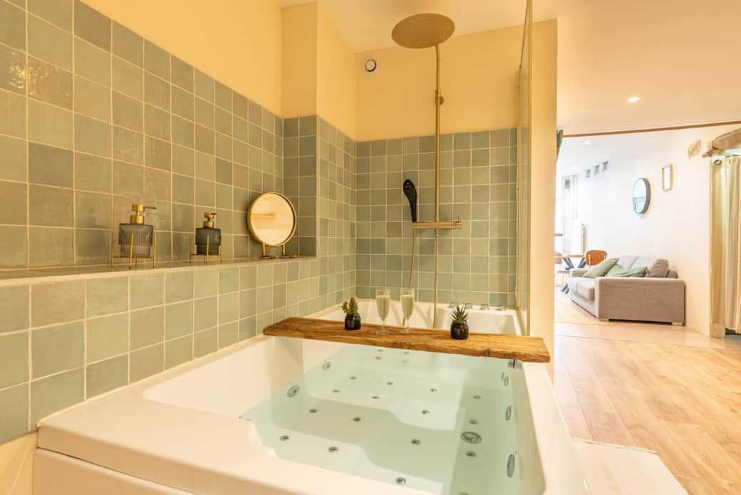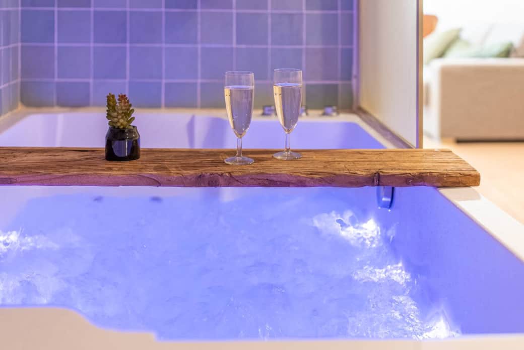 Lumières tamisées, musique douce, eaux bouillonantes, ambiance envoûtante.